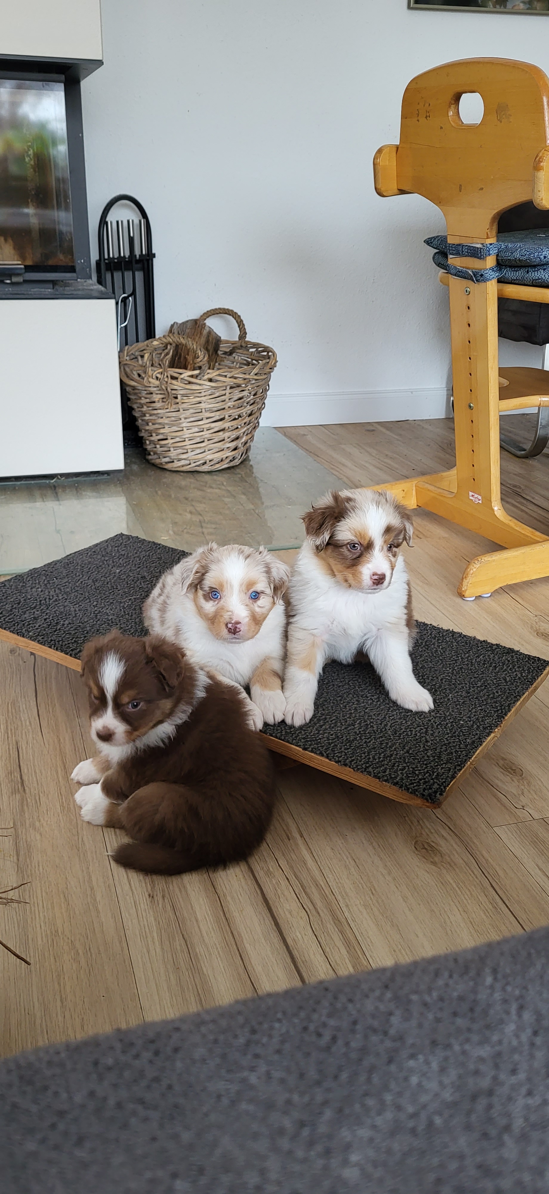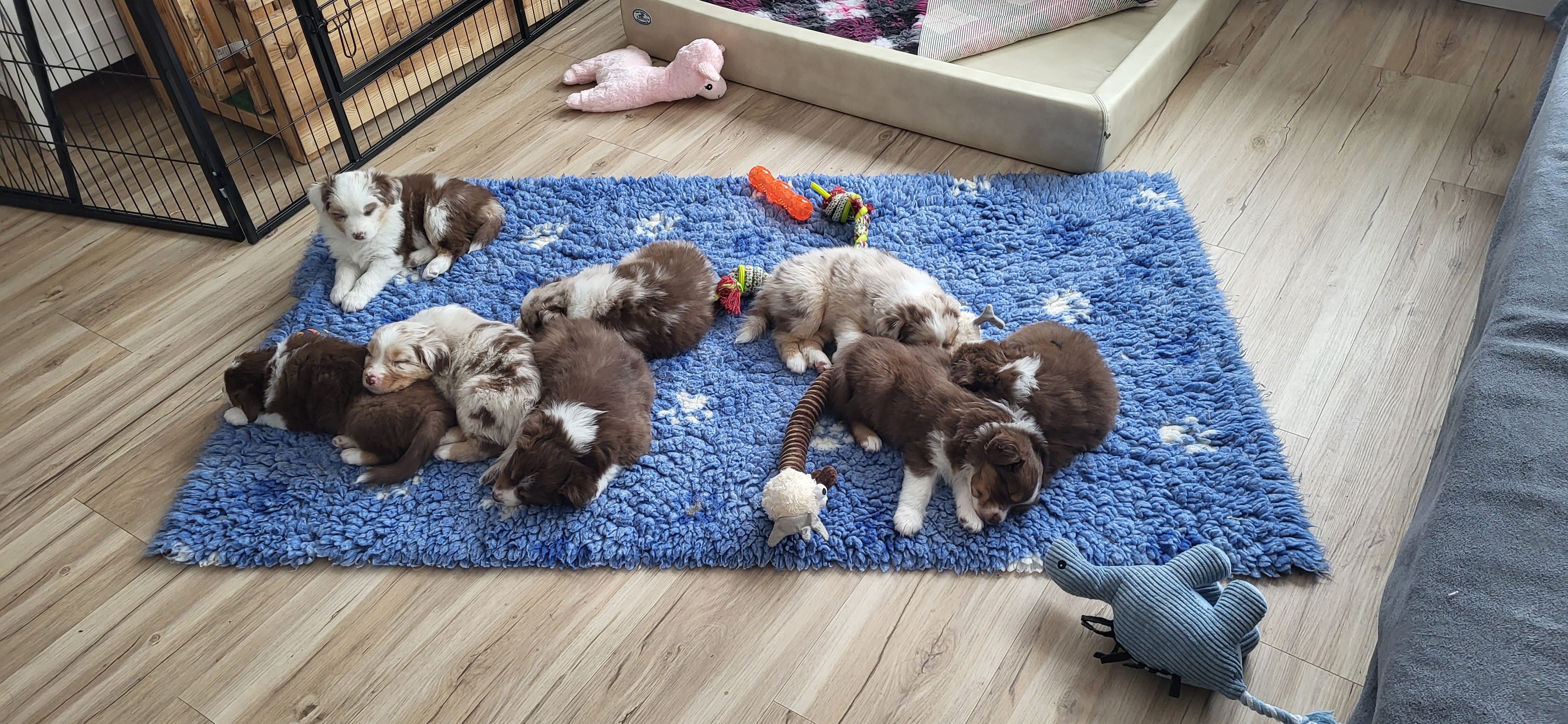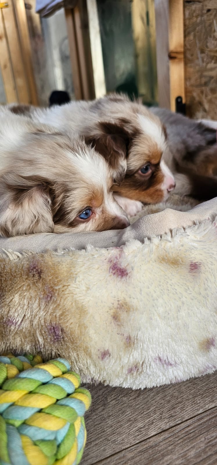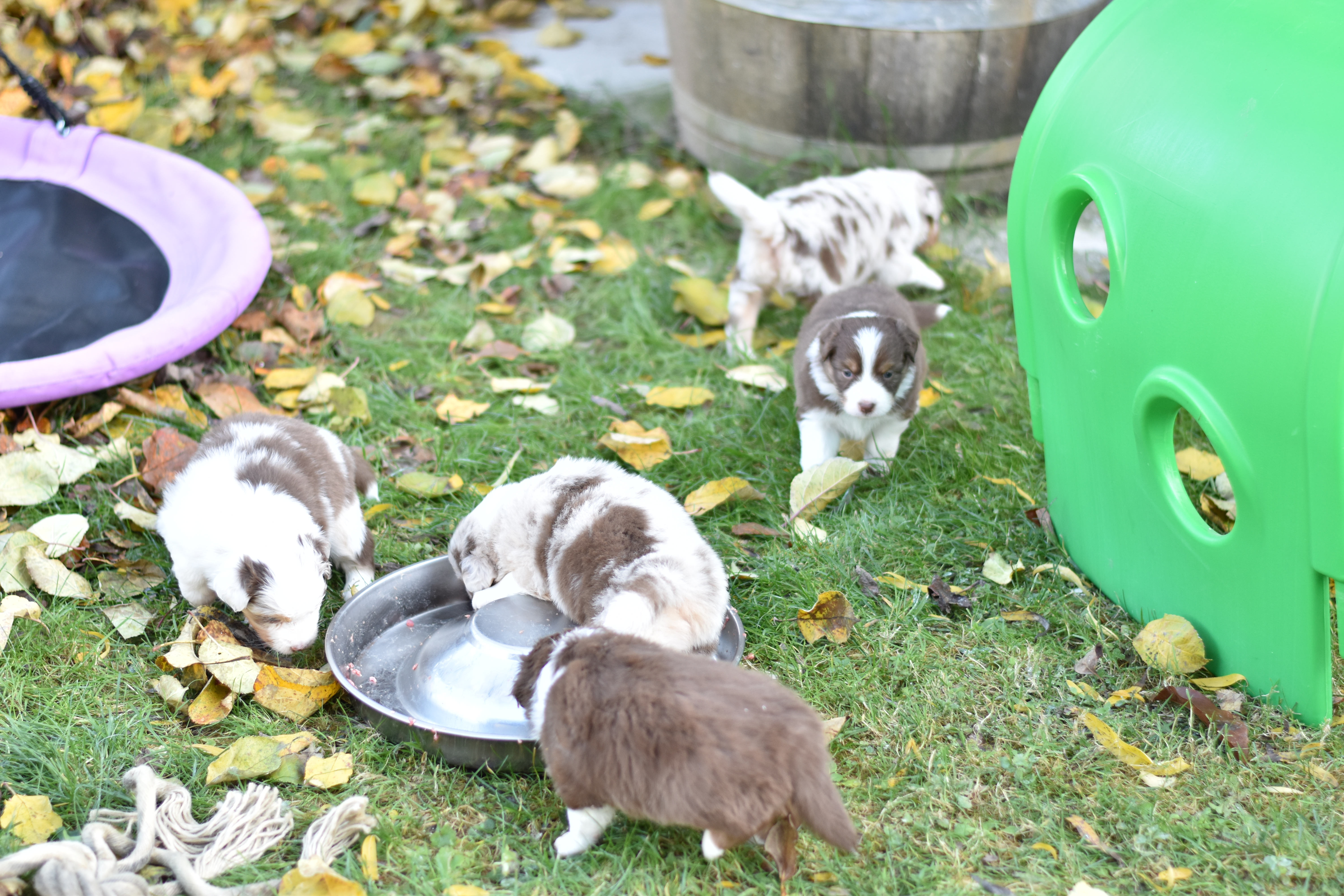 Bei Auszug sind unsere Welpen geimpft, gechipt, entwurmt und bringen ein umfangreiches Welpenpaket mit. Alle Welpen haben ASCA Papiere und bei Abgabe ein Gesundheitszeugnis sowie eine Kotuntersuchung. Wir barfen. Das bedeutet dass unsere Hunde mit Rohfleisch gefüttert werden. Für den Start gibt es hier natürlich für einige Tage Futter mit, sowie eine Anleitung für die Zubereitung in der 1. Woche Zuhause. Welpen im Wachstum brauchen eine wöchentliche Anpassung des Bedarfsplans. Wir füttern ausschließlich Rind, Huhn und Lachs. Diese Art der Fütterung gewöhnt die Welpen schonend und langsam an festes Futter und beugt Unverträglichkeiten vor. Jegliches Trocken und Nassfutter beinhaltet unglaublich viele Komponenten und überfordert den Welpen schnell.