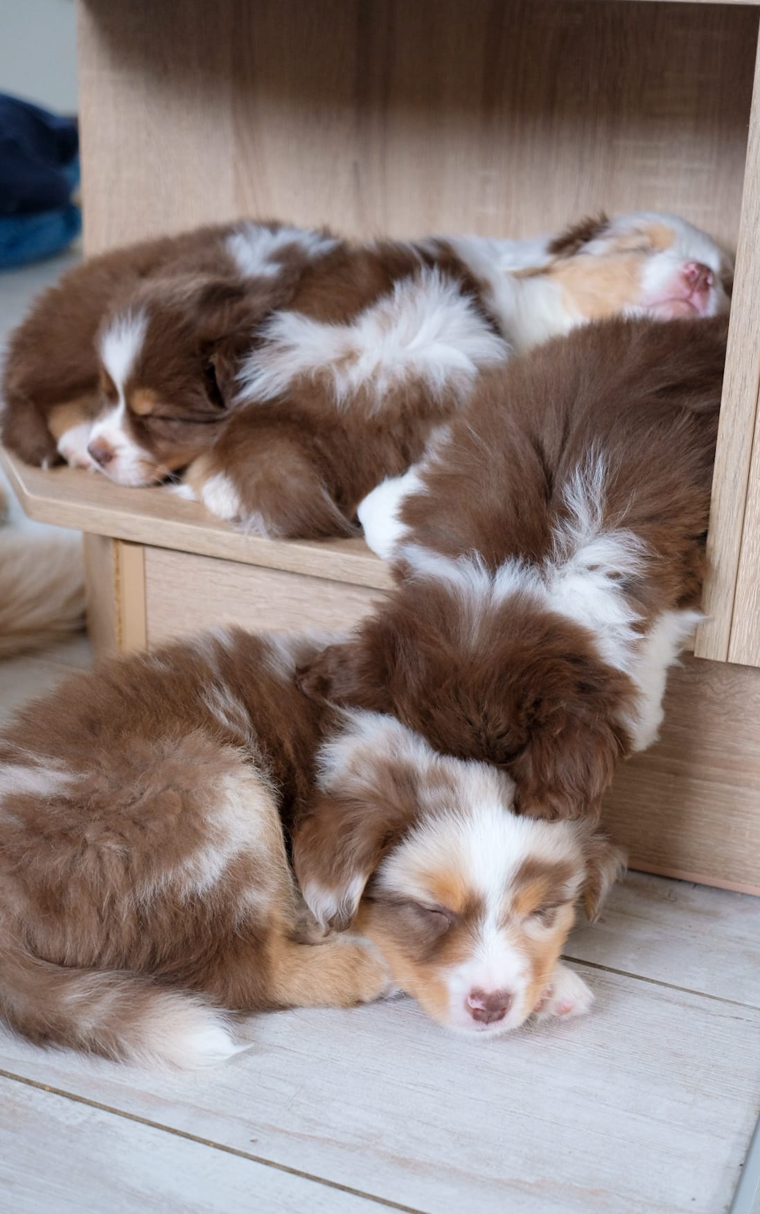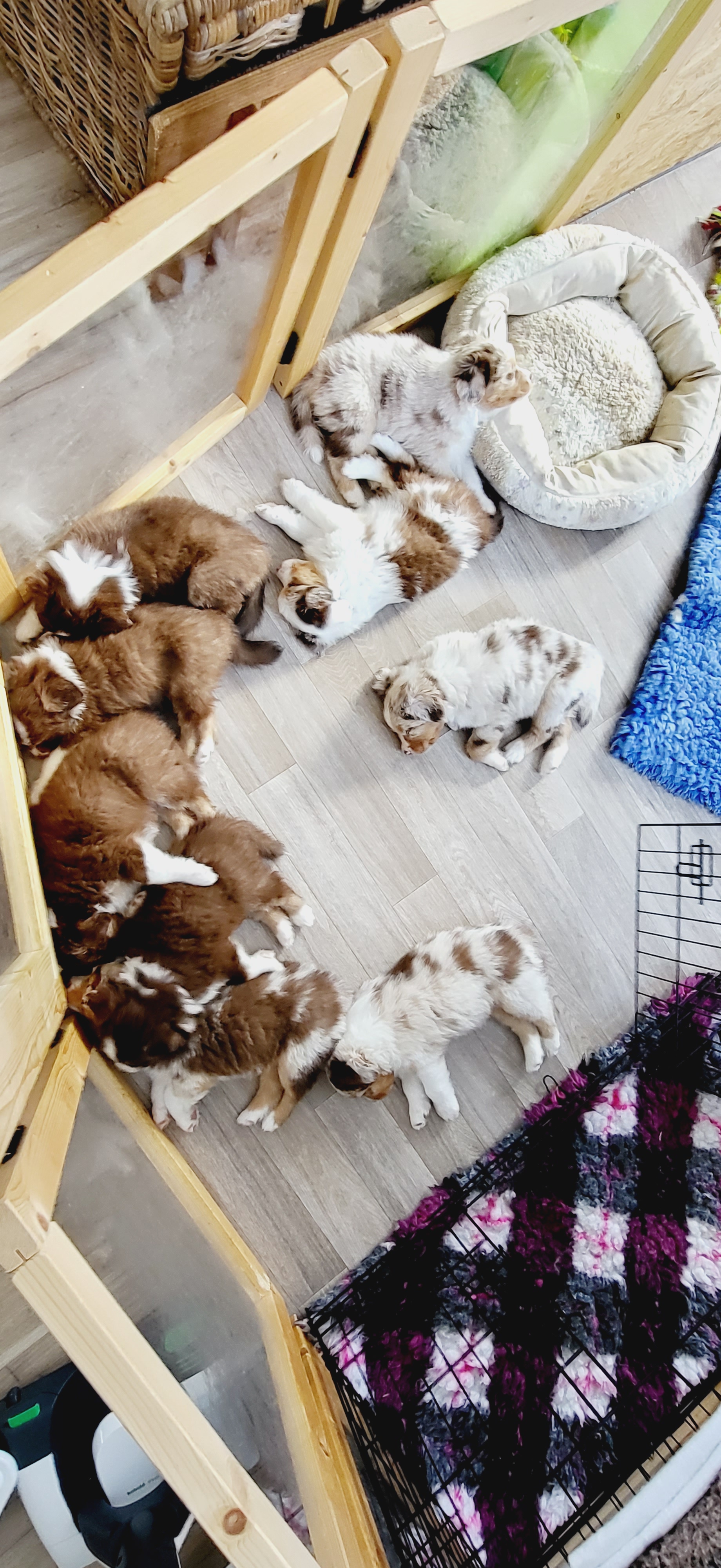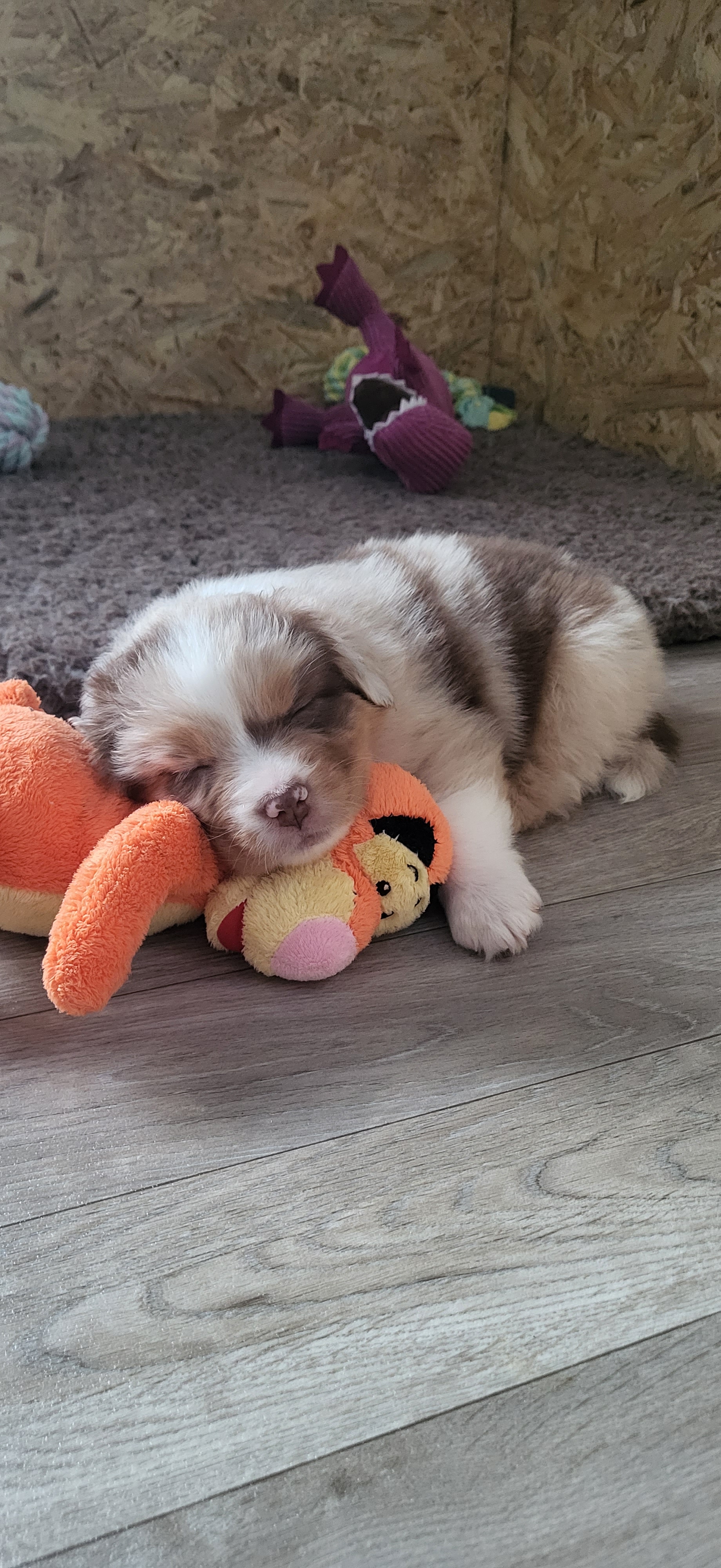 Bei Auszug sind unsere Welpen geimpft, gechipt, entwurmt und bringen ein umfangreiches Welpenpaket mit. Alle Welpen haben ASCA Papiere und bei Abgabe ein Gesundheitszeugnis sowie eine Kotuntersuchung. Wir barfen. Das bedeutet dass unsere Hunde mit Rohfleisch gefüttert werden. Für den Start gibt es hier natürlich für einige Tage Futter mit, sowie eine Anleitung für die Zubereitung in der 1. Woche Zuhause. Welpen im Wachstum brauchen eine wöchentliche Anpassung des Bedarfsplans. Wir füttern ausschließlich Rind, Huhn und Lachs. Diese Art der Fütterung gewöhnt die Welpen schonend und langsam an festes Futter und beugt Unverträglichkeiten vor. Jegliches Trocken und Nassfutter beinhaltet unglaublich viele Komponenten und überfordert den Welpen schnell.