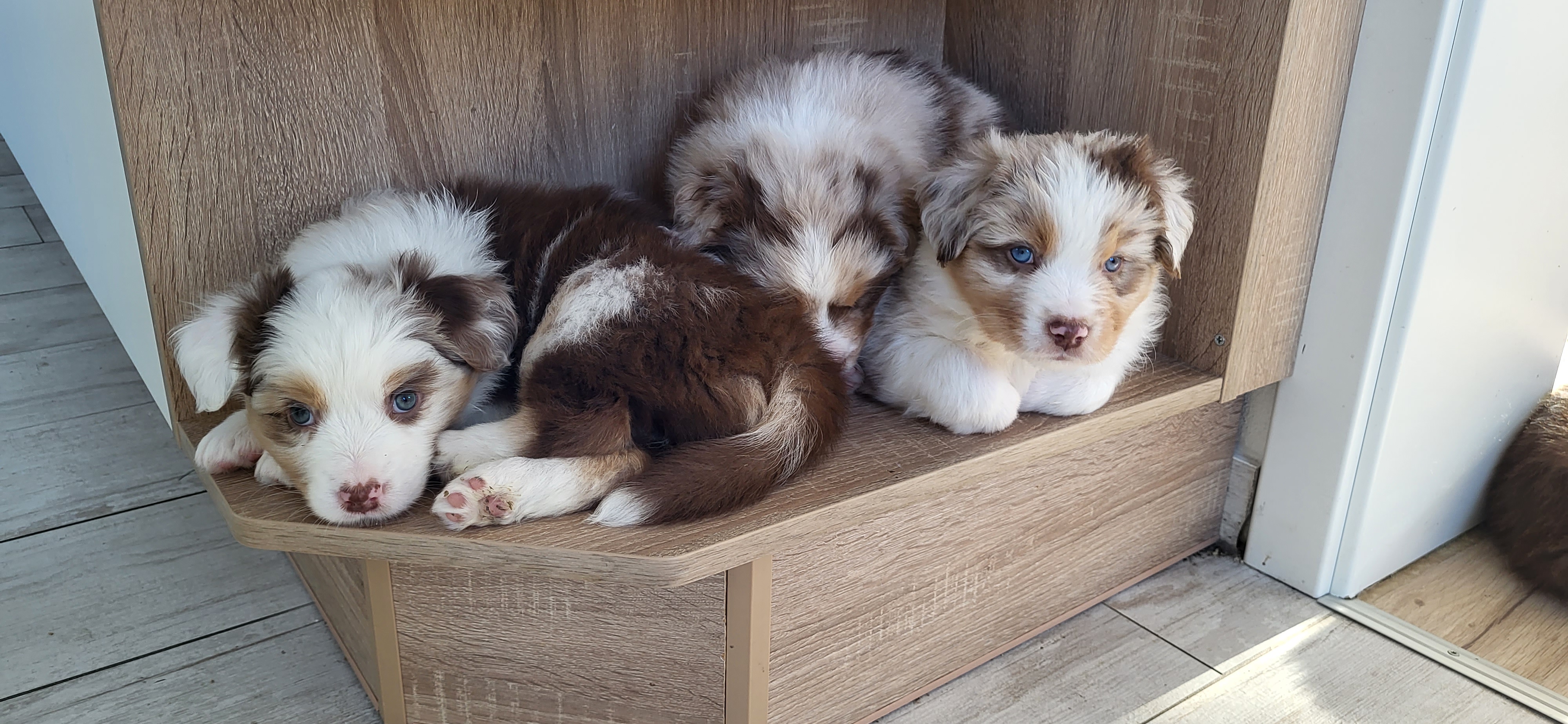 Die Welpen freuen sich ab der vierten Woche über regelmäßigen Besuch ihrer Menschen. (Besuchstag ist Sonntag). Das macht ihnen später auch den Auszug leichter. Ab diesem Zeitpunkt zeigen sich bereits die ersten Charaktereigenschaften. Das ist natürlich sehr wichtig um zu entscheiden, welcher Welpe zu welchen Menschen passt. Denn ein guter Hund hat keine Farbe. Mit viel Glück begleitet uns ein Hund 15 Jahre. Wer möchte da also nicht den passenden Hund. Wir verstehen, wenn man eine Hündin bzw lieber einen Rüden hätte. Farbwünsche lehnen wir ab. Unsere Welpen kosten auch unabhängig der Farbe alle gleich.
